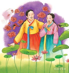 장미꽃과 붉은 연꽃을 닮은 두 자매는 부모의 사랑을 듬뿍 받으며 자라죠.